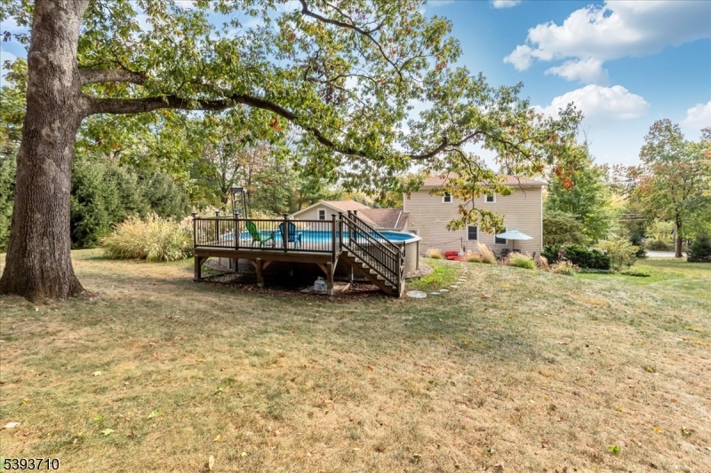 The one you've been waiting for in the heart of Martinsville! This classic Colonial blends timeless design with thoughtful updates and an inviting layout. The front entry opens to a freshly painted living room with 8'6" ceilings, new wood floors, and an abundance of natural light. A secondary entrance leads to a spacious mud room providing convenient access to both the home and the oversized two-car garage. The country-style kitchen features dual sinks, a center island, and a generous eat-in area, truly the heart of the home! The kitchen also offers direct access to the expansive outdoor patio. The freshly painted dining room offers the perfect setting for gatherings and entertaining. The main level also includes a convenient laundry/pantry area and a stylish powder room. Upstairs, three generous bedrooms include a large primary suite with a beautifully renovated en suite bath (2025) and a walk-in closet. A second laundry area adds everyday convenience on this level. The finished basement provides flexible space for recreation, fitness, or storage. Outdoors, enjoy a beautifully landscaped 1.15-acre property with a tranquil water feature, above-ground pool, and expansive patio for gatherings. Room for expansion above the garage adds exciting future potential!